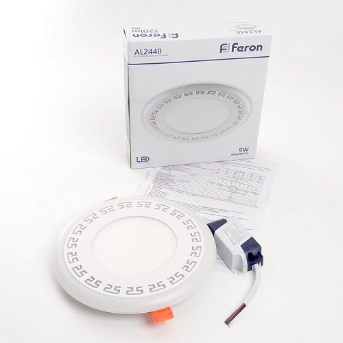 Характеристики Светодиодный светильник Feron AL2440 встраиваемый 9W 4000K с синей подсветкой, белый