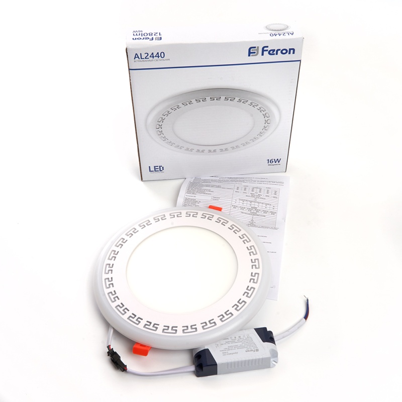 Характеристики Светодиодный светильник Feron AL2440 встраиваемый 16W 4000K и подсветка 4000К белый