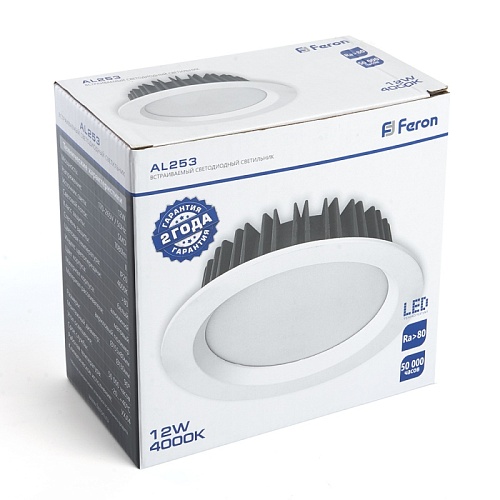 Характеристики Светодиодный светильник Feron AL253 встраиваемый 12W 4000K белый серия MarketBright