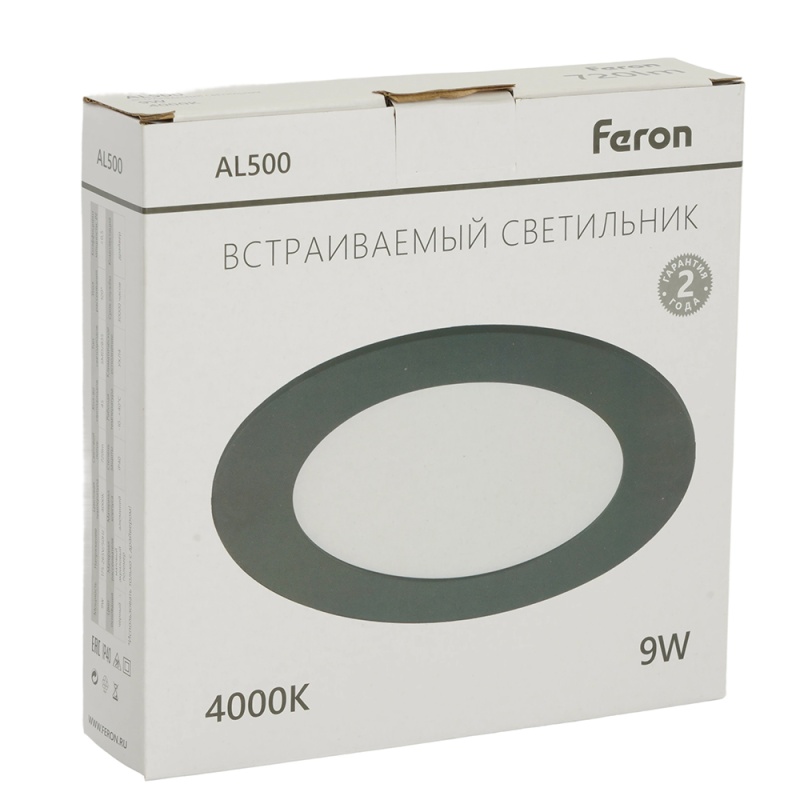 Характеристики Светодиодный светильник Feron AL500 встраиваемый 9W 4000K черный