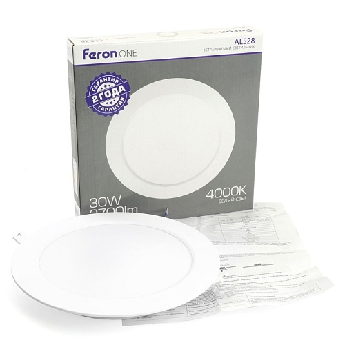 Характеристики Светодиодный светильник Feron.ONE AL528 встраиваемый 30W 4000K белый