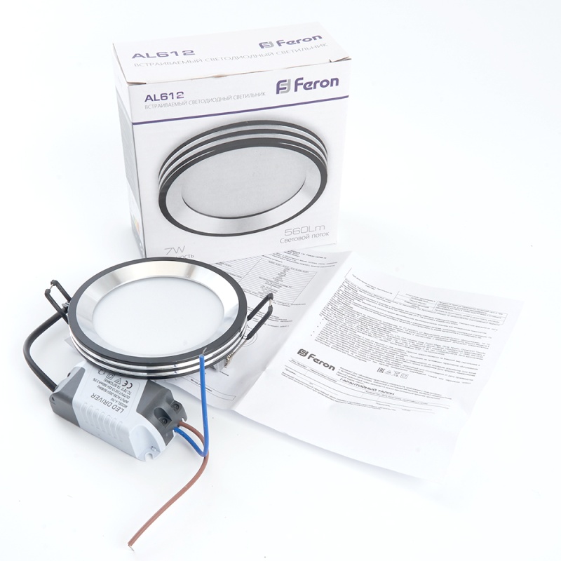 Характеристики Светодиодный светильник Feron AL612 встраиваемый 7W 4000K черный