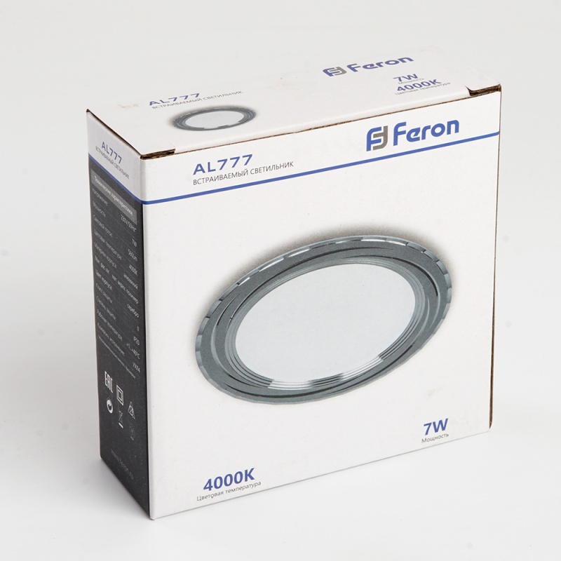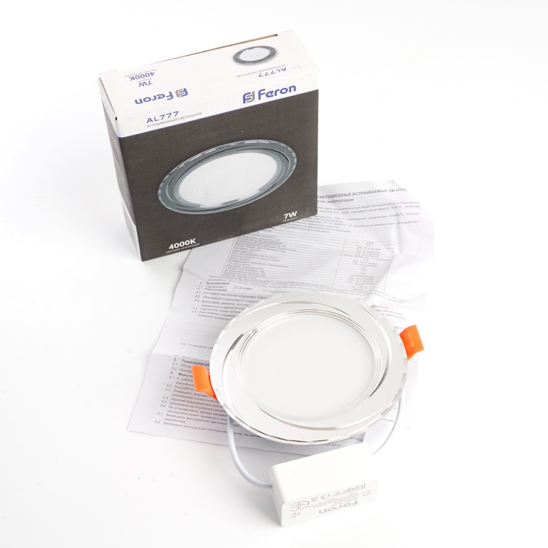 Характеристики Светодиодный светильник Feron AL777 встраиваемый 7W 4000K серебристый