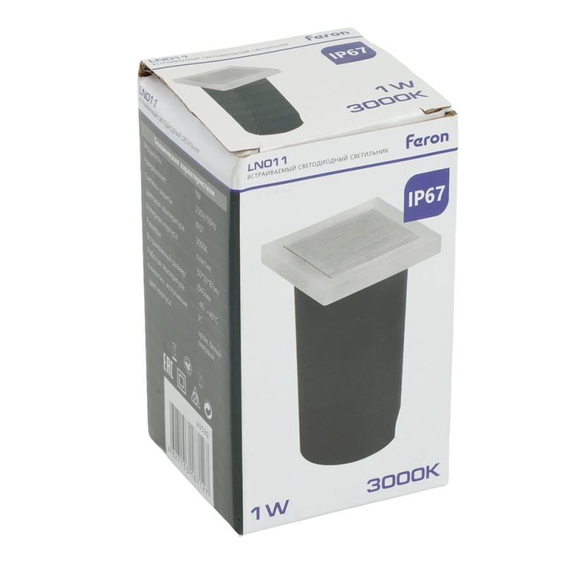 Характеристики Светодиодный светильник Feron LN011 встраиваемый 1W 3000K, IP67, белый матовый/хром