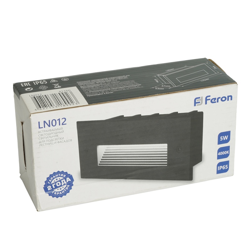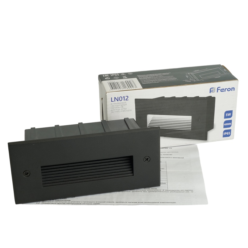 Характеристики Светодиодный светильник Feron LN012 встраиваемый 5W 4000K, IP65, черный