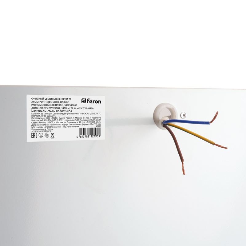 Офисный светильник серии TR Армстронг 40Вт, 5000К, опал с равномерной засветкой 48911