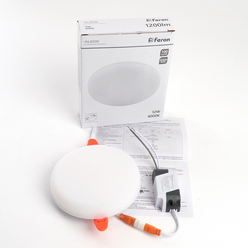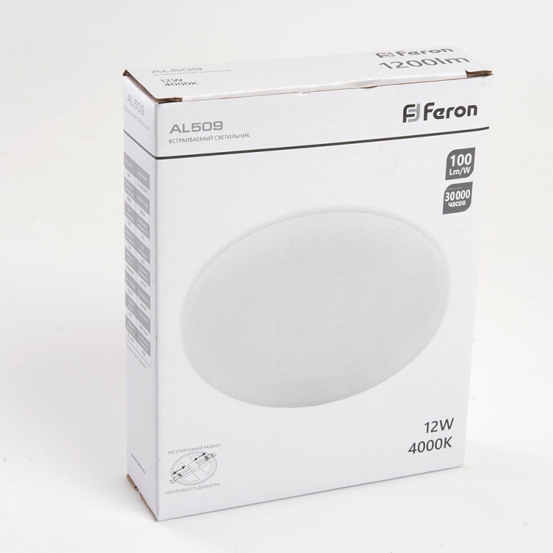 Характеристики Светодиодный светильник Feron AL509 встраиваемый с регулируемым монтажным диаметром (до 100мм) 12W 4000K белый серия FlexyRim