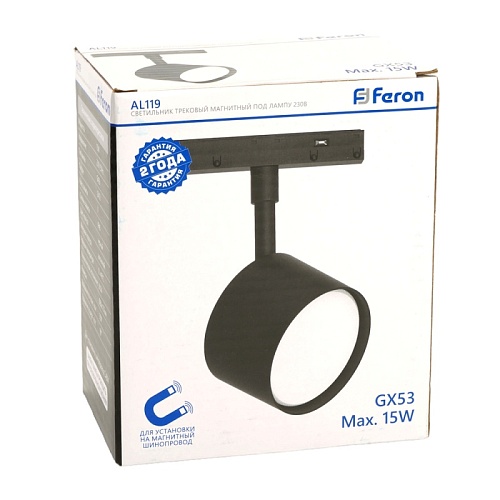 Характеристики Светильник Feron AL119 трековый магнитный под лампу GX53 230В, черный