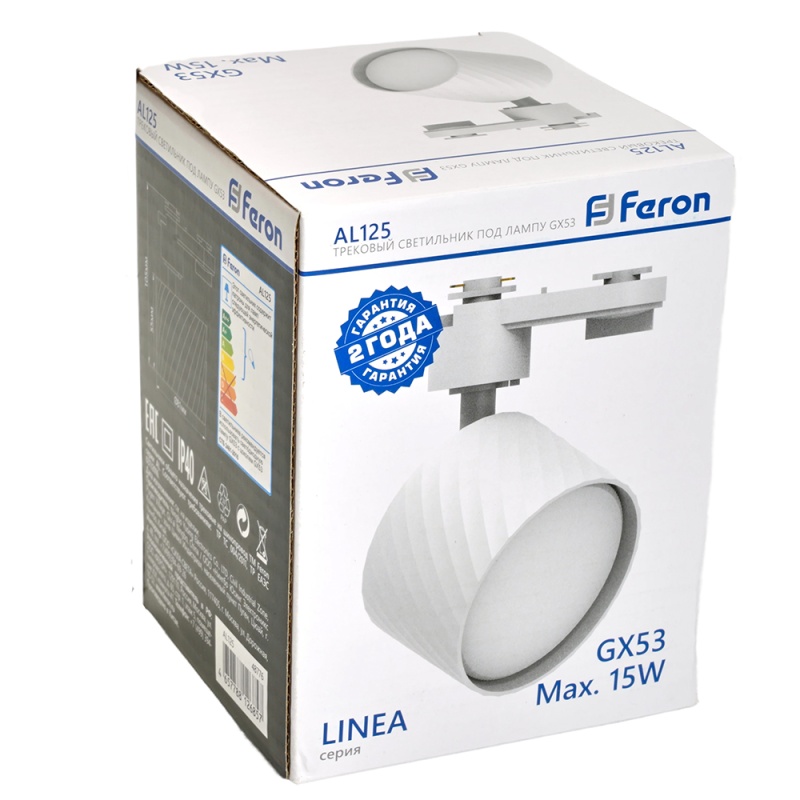 Характеристики Светильник Feron AL125 трековый однофазный на шинопровод под лампу GX53, белый