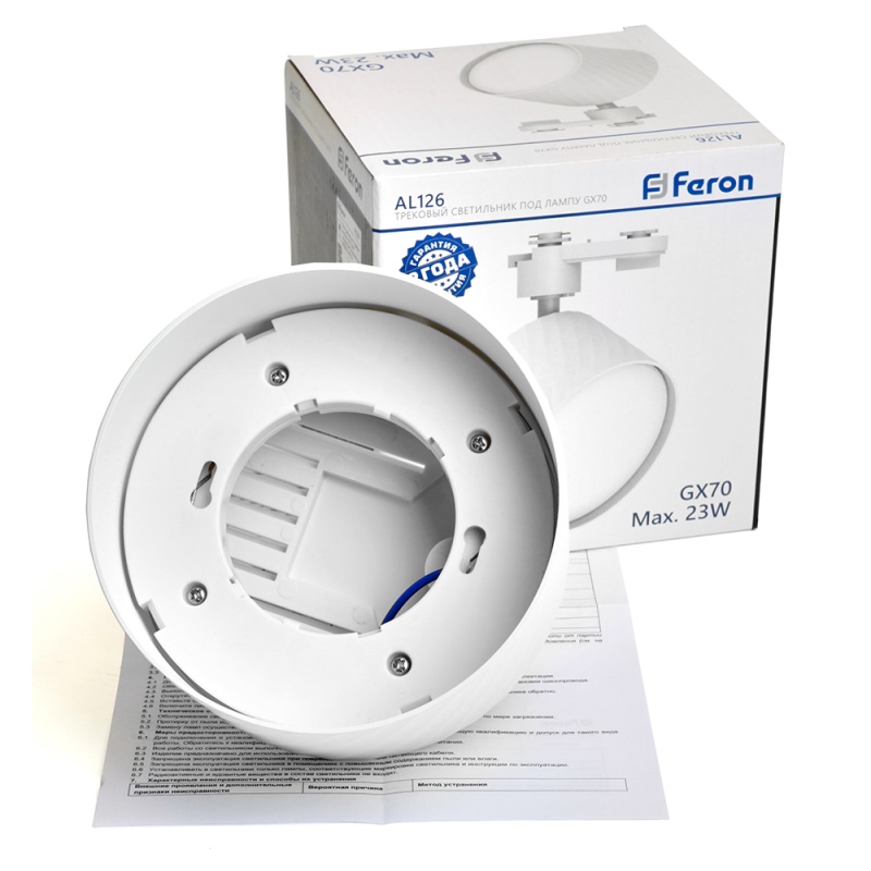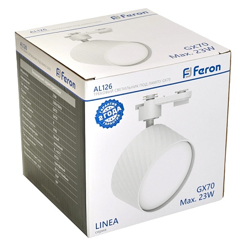 Характеристики Светильник Feron AL126 трековый однофазный на шинопровод под лампу GX70, белый