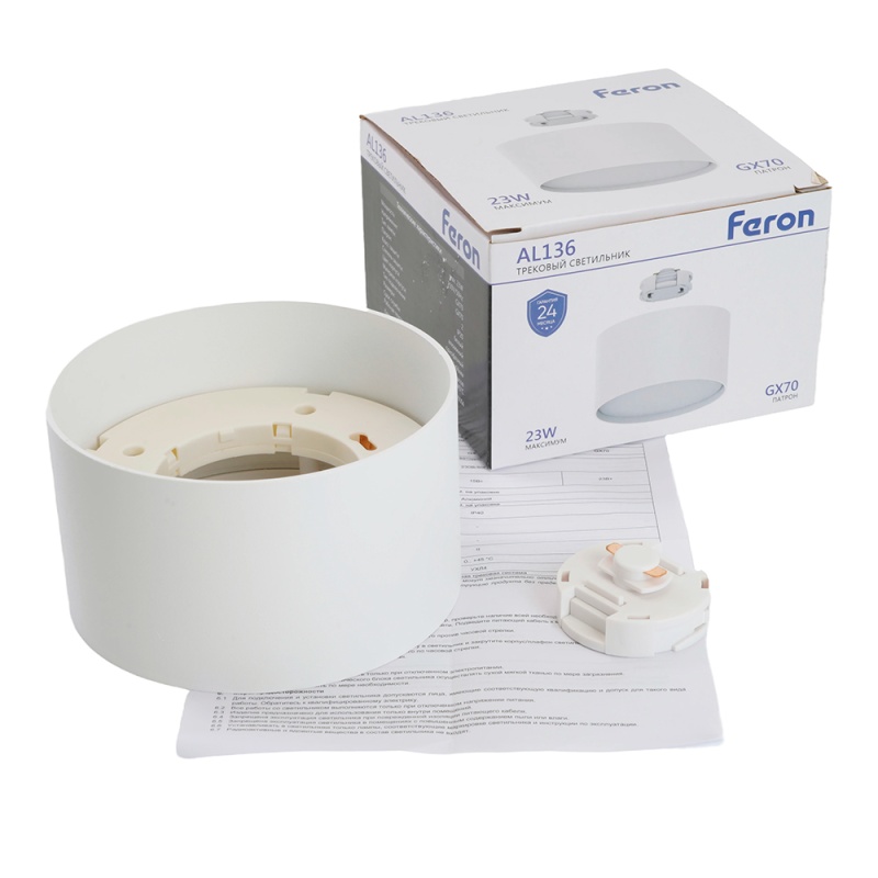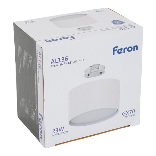 Характеристики Светильник Feron AL136 трековый однофазный на шинопровод под лампу GX70, белый