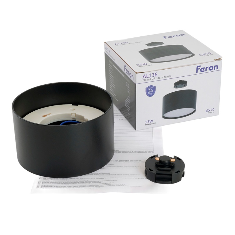 Характеристики Светильник Feron AL136 трековый однофазный на шинопровод под лампу GX70, черный