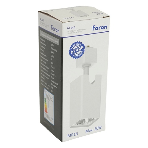 Характеристики Светильник Feron AL144 трековый однофазный на шинопровод под лампу GU10, белый