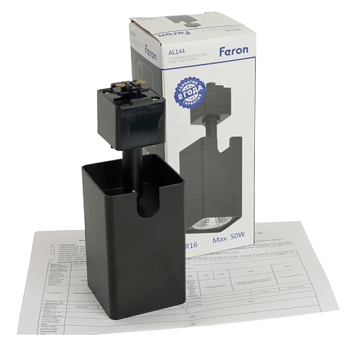 Характеристики Светильник Feron AL144 трековый однофазный на шинопровод под лампу GU10, черный