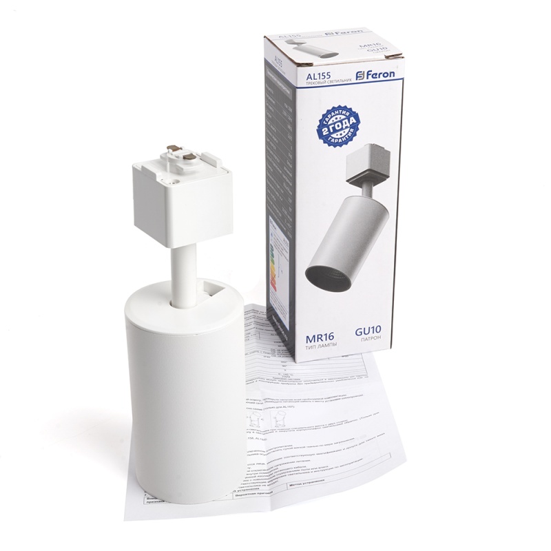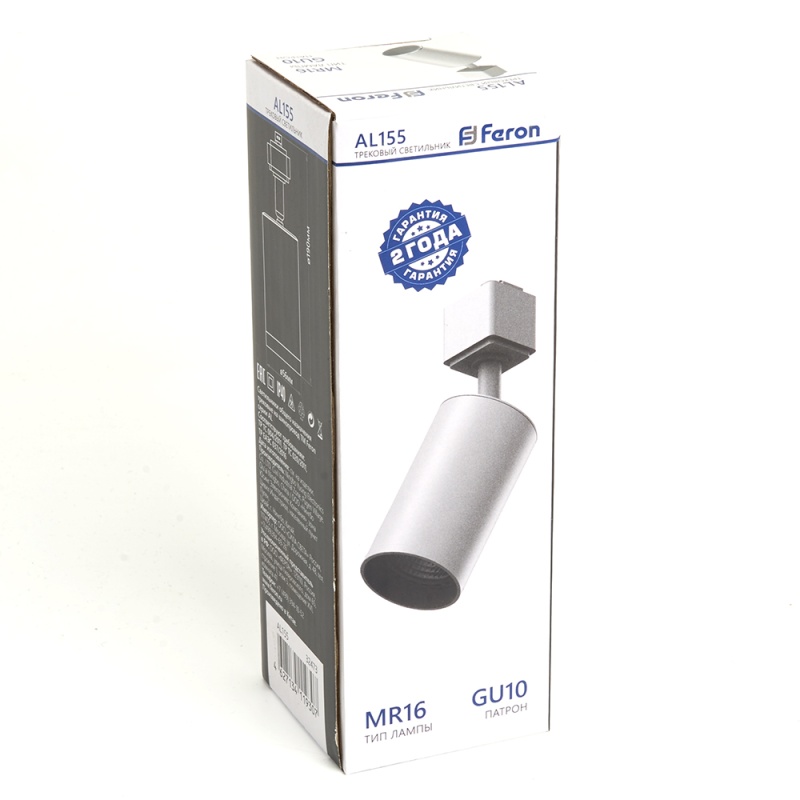 Характеристики Светильник Feron AL155 трековый однофазный на шинопровод под лампу GU10, белый