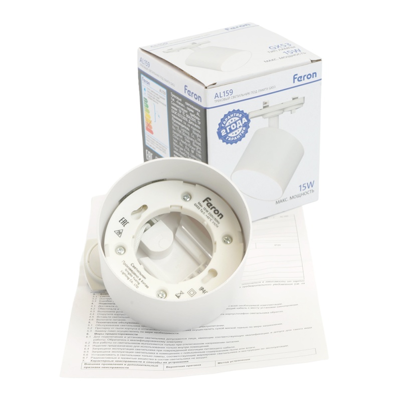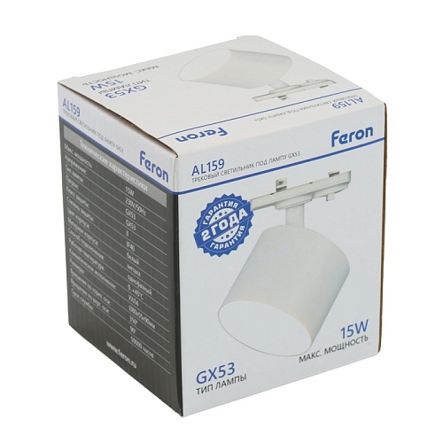 Характеристики Светильник Feron AL159 трековый однофазный на шинопровод под лампу GX53, белый