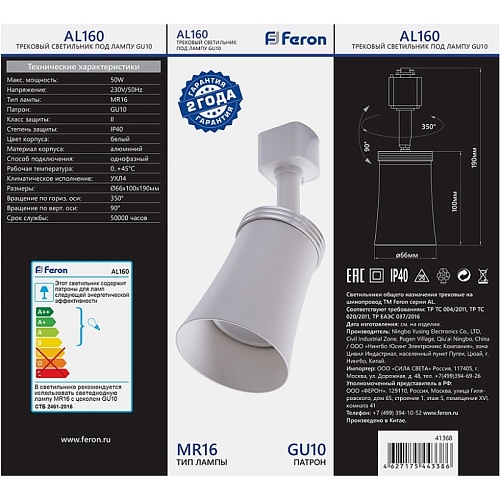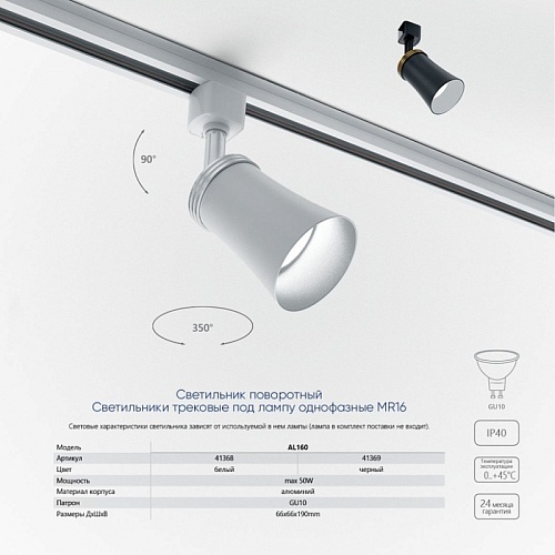 Характеристики Светильники трековые на шинопровод FERON AL160 41368