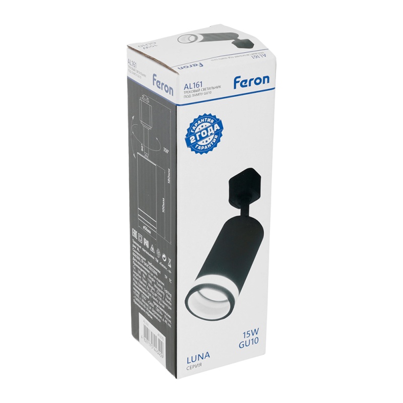 Характеристики Светильник Feron AL161 трековый однофазный на шинопровод под лампу GU10, черный