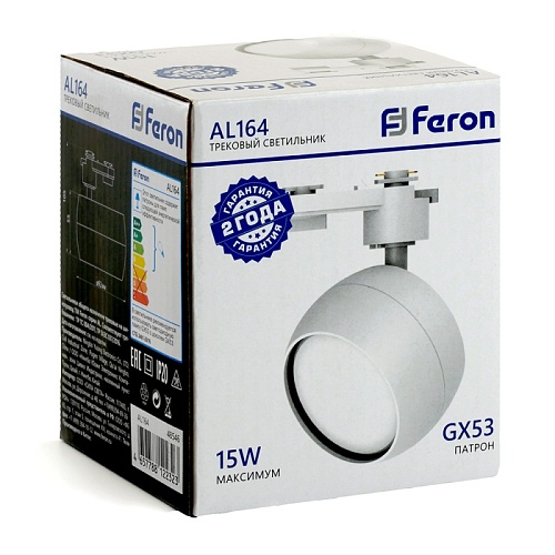 Характеристики Светильник Feron AL164 трековый однофазный на шинопровод под лампу GX53, белый