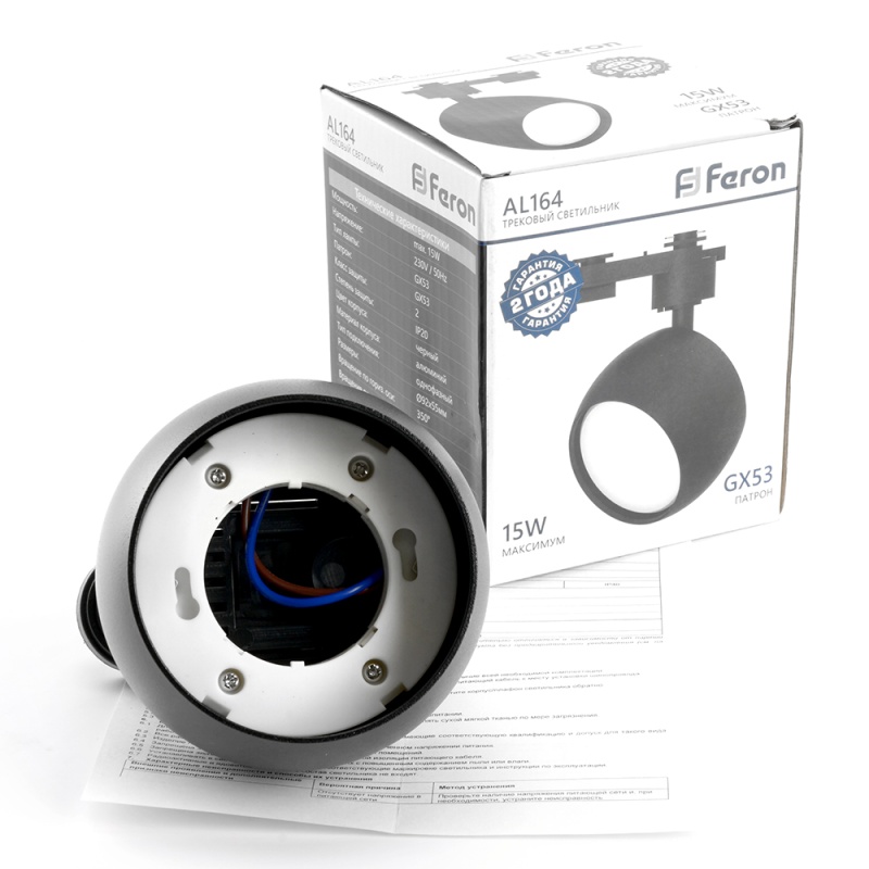 Характеристики Светильник Feron AL164 трековый однофазный на шинопровод под лампу GX53, черный