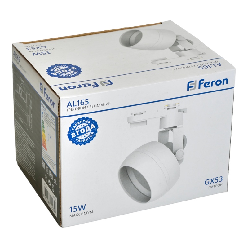Характеристики Светильник Feron AL165 трековый однофазный на шинопровод под лампу GX53, белый