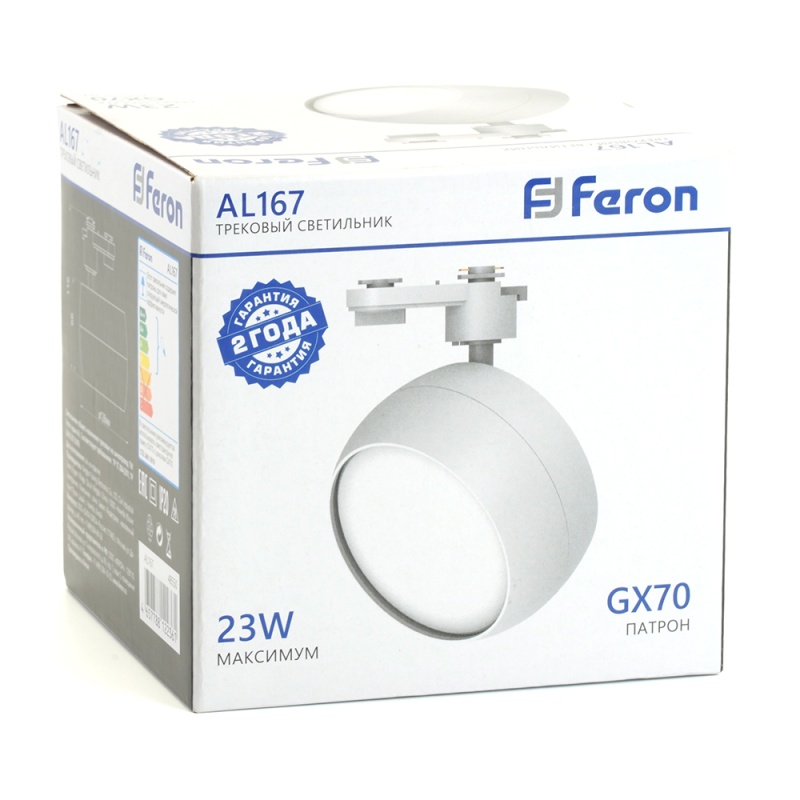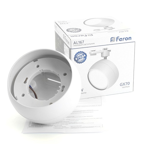 Характеристики Светильник Feron AL167 трековый однофазный на шинопровод под лампу GX70, белый