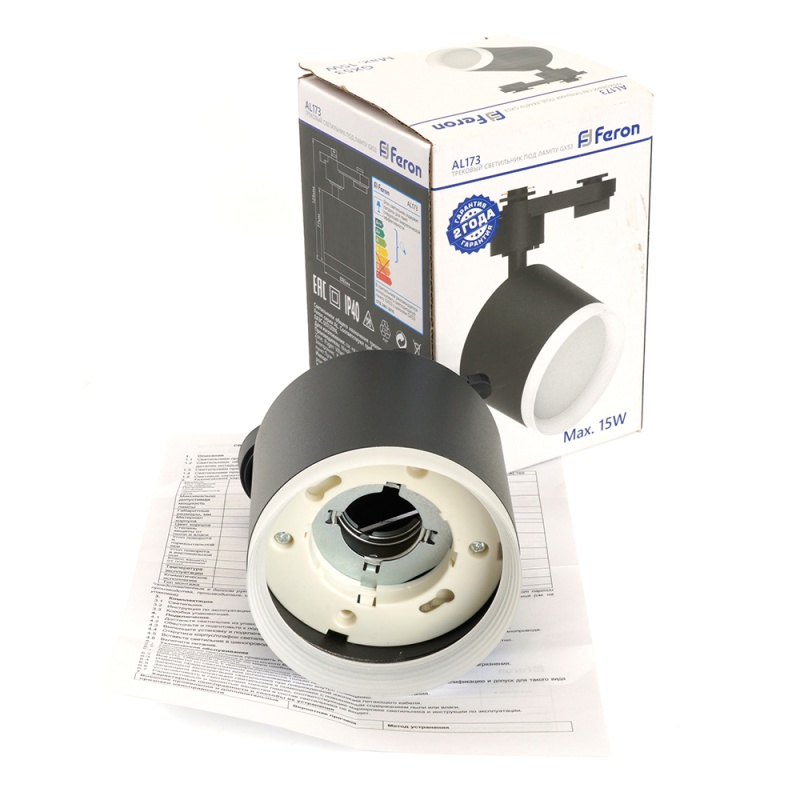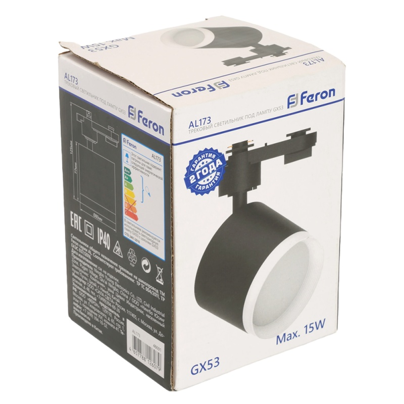 Характеристики Светильник Feron AL173 трековый однофазный на шинопровод под лампу GX53, черный