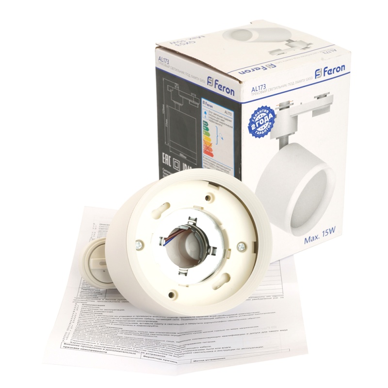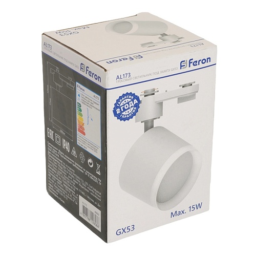 Характеристики Светильник Feron AL173 трековый однофазный на шинопровод под лампу GX53, белый