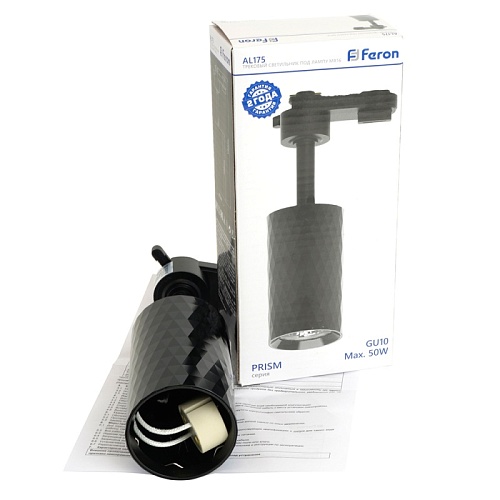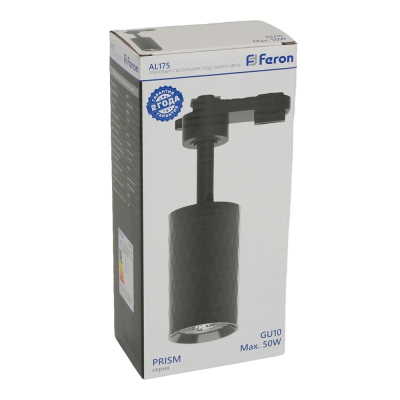 Характеристики Светильник Feron AL175 трековый однофазный на шинопровод под лампу GU10, черный