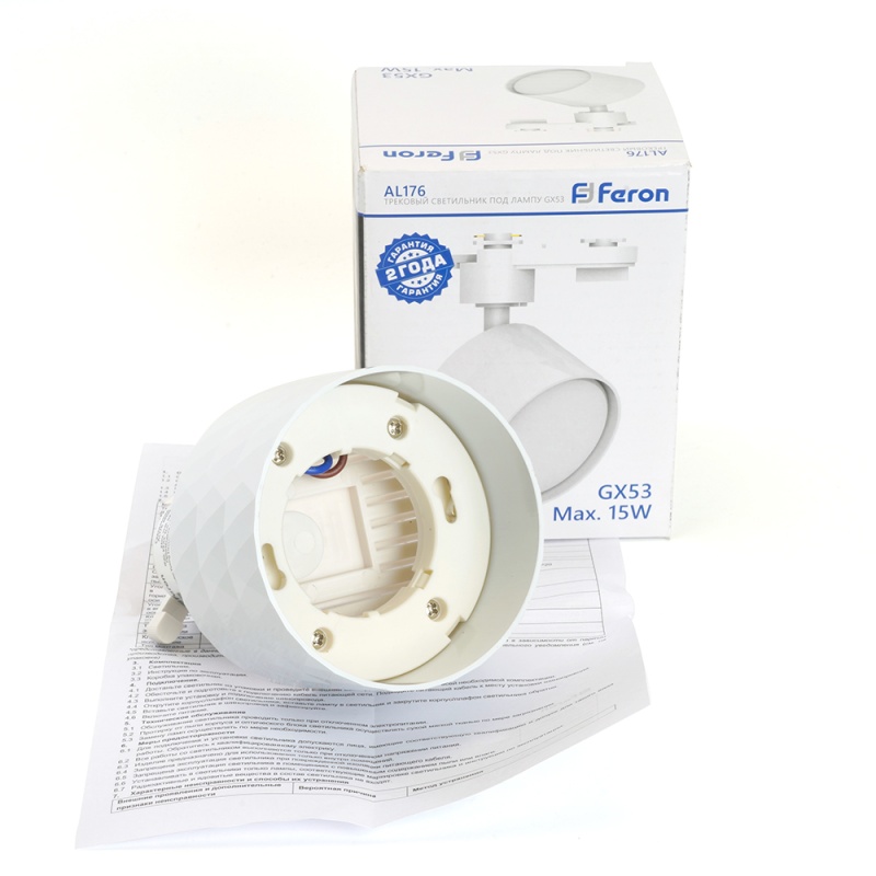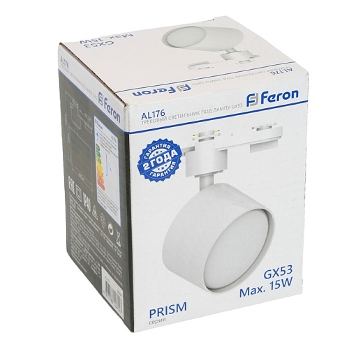 Характеристики Светильник Feron AL176 трековый однофазный на шинопровод под лампу GX53, белый