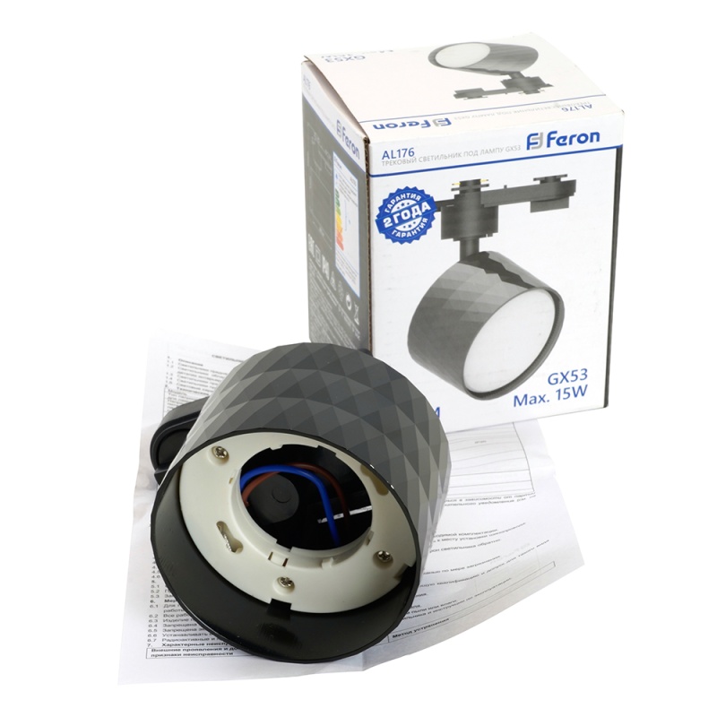 Характеристики Светильник Feron AL176 трековый однофазный на шинопровод под лампу GX53, черный