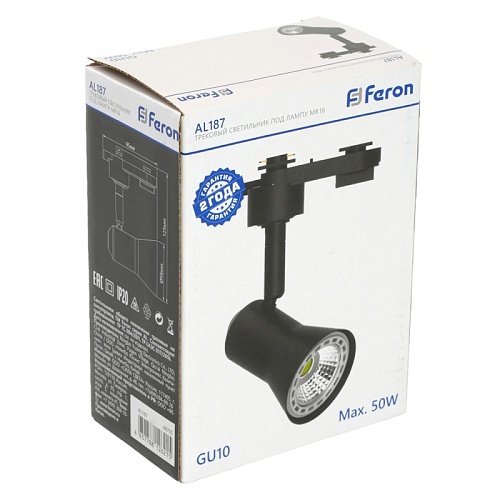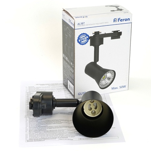 Характеристики Светильник Feron AL187 трековый однофазный на шинопровод под лампу GU10, черный
