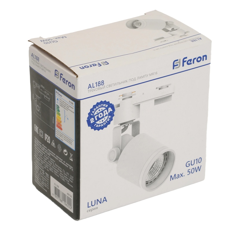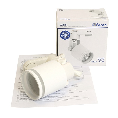 Характеристики Светильник Feron AL188 трековый однофазный на шинопровод под лампу GU10, белый
