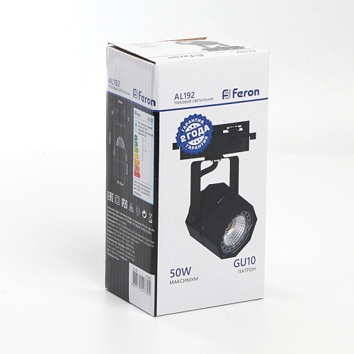 Характеристики Светильник Feron AL192 трековый однофазный на шинопровод под лампу GU10, черный