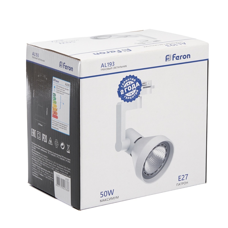 Характеристики Светильник Feron AL193 трековый однофазный на шинопровод под лампу E27, белый