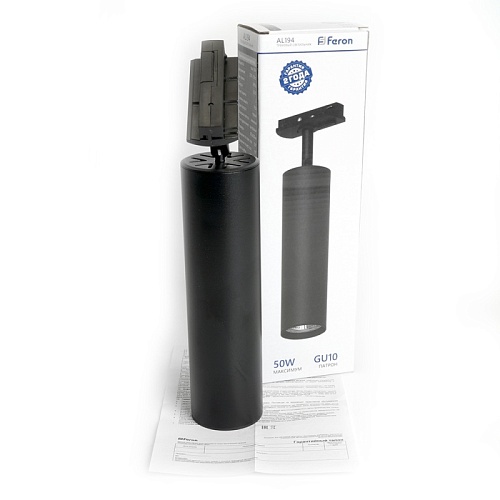 Характеристики Светильник Feron AL194 трековый однофазный на шинопровод под лампу GU10, черный