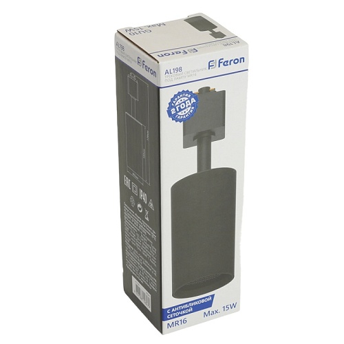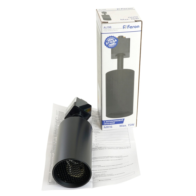 Характеристики Светильник Feron AL198 трековый однофазный на шинопровод под лампу GU10, черный с антибликовой сеточкой