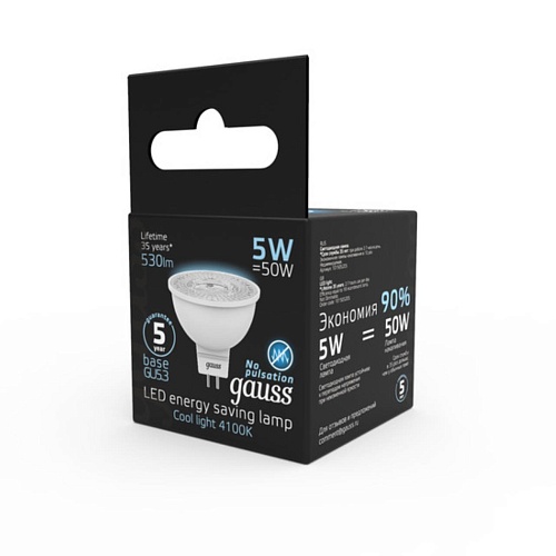 Отзывы о Светодиодная лампа Gauss Софит 5W 530Lm 4100K GU5.3 101505205