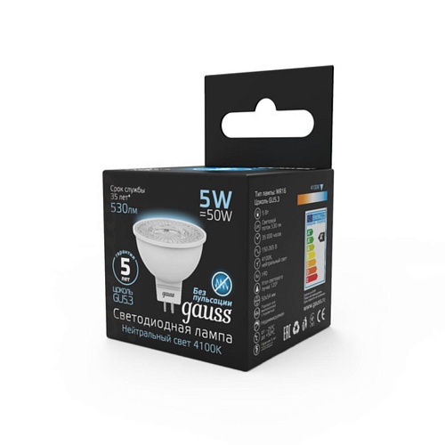 Светодиодная лампа Gauss Софит 5W 530Lm 4100K GU5.3 101505205 101505205_GAUSS