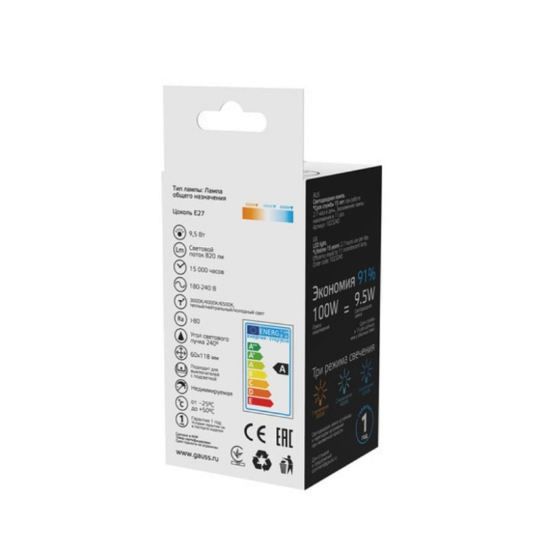 Характеристики Светодиодная лампа GAUSS 1023240_GAUSS