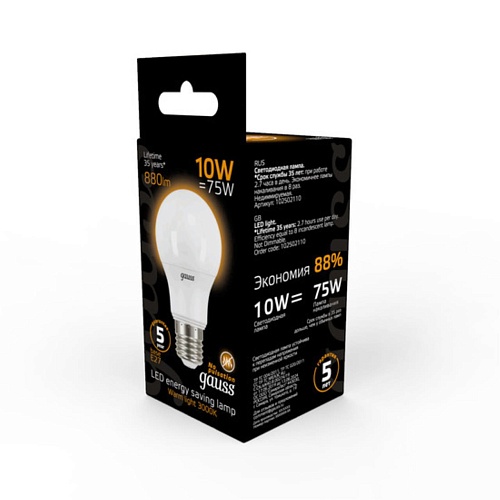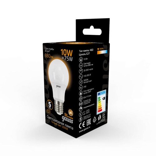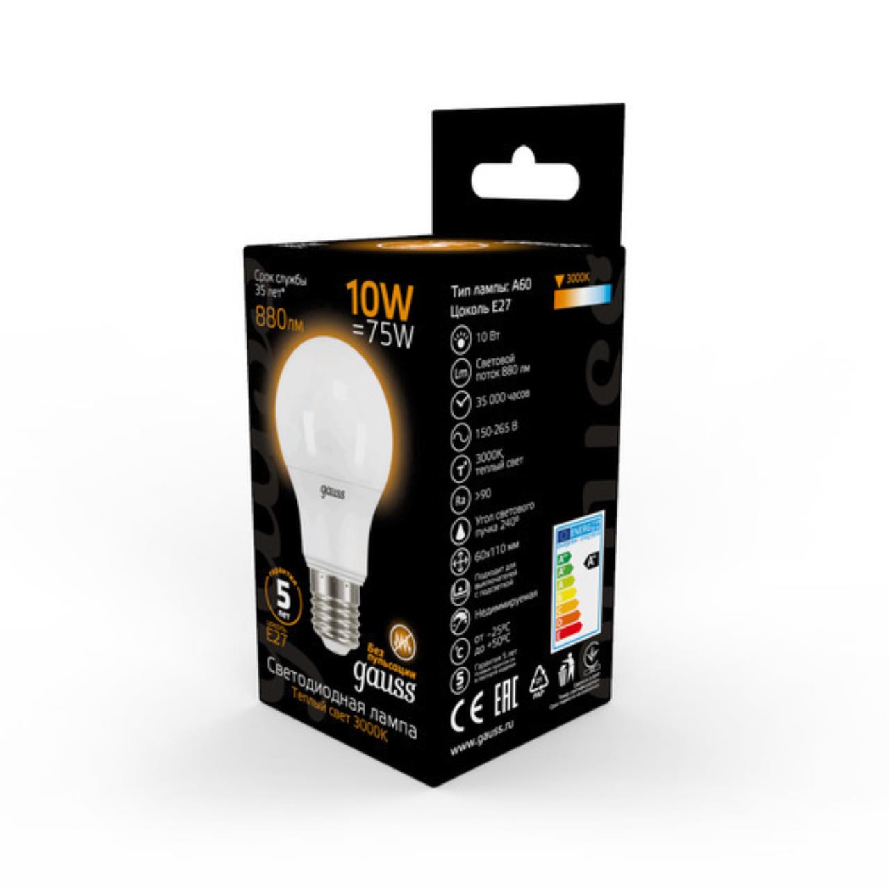 Светодиодная лампа Gauss A60 10W 880Lm 3000K E27 102502110 102502110_GAUSS