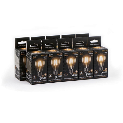 Светодиодная филаментная лампа Gauss A60 6W 600Lm 2700K E27 102802106 102802106_GAUSS