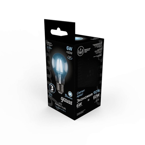 Характеристики Светодиодная филаментная лампа Gauss A60 6W 630Lm 4100K E27 102802206
