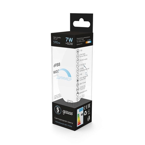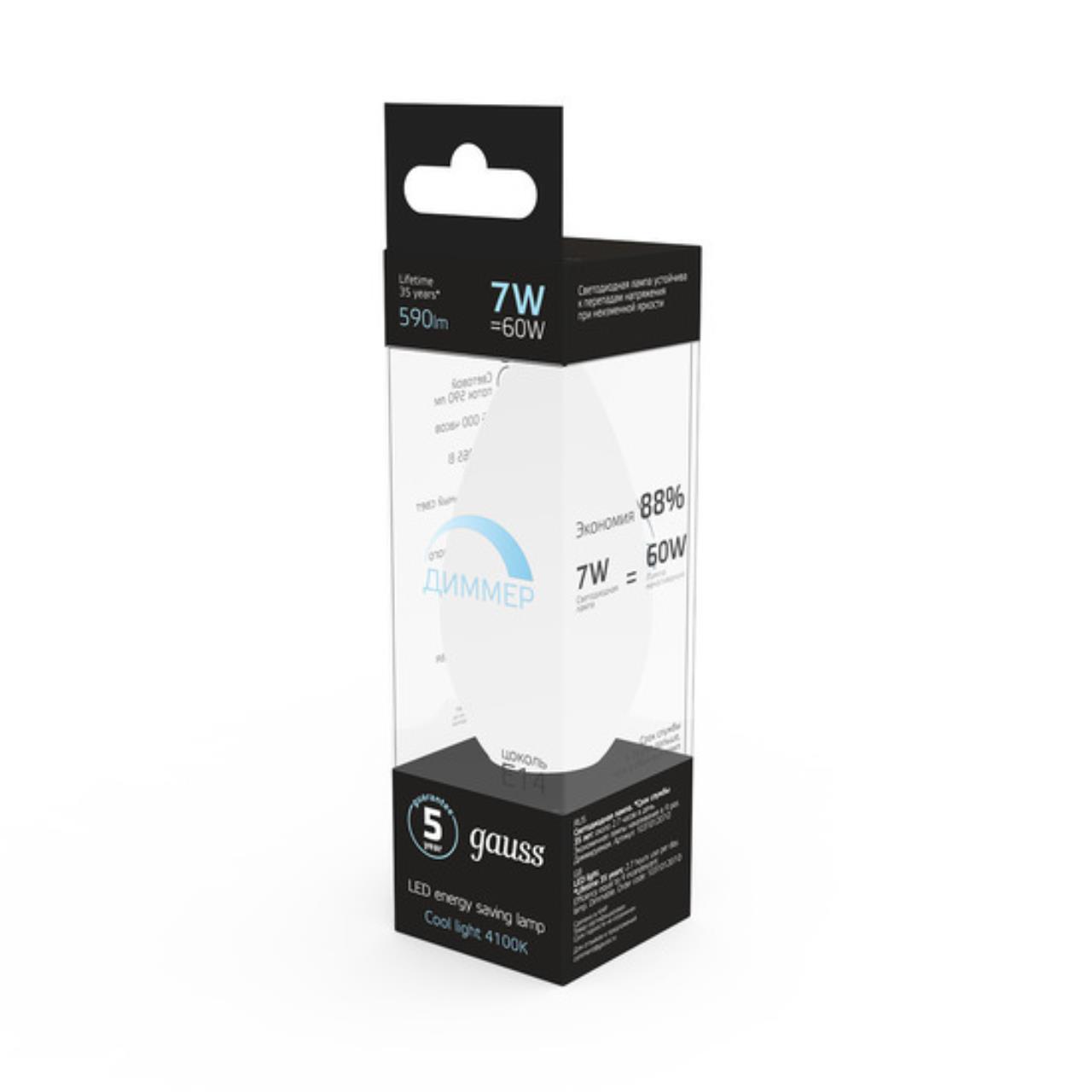 Светодиодная лампа Gauss Свеча 7W 590Lm 4100K E14 103101207-D 103101207-D_GAUSS