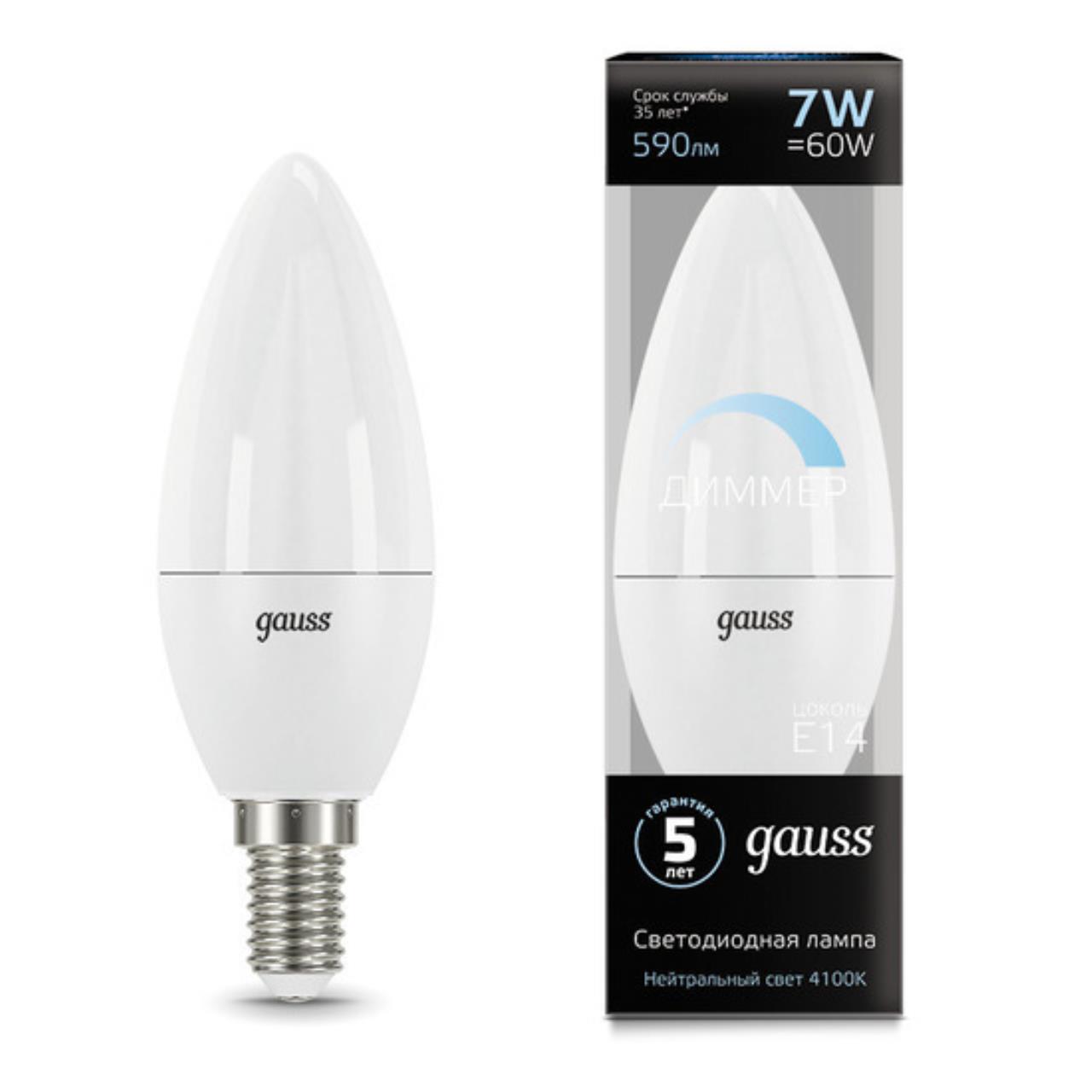 Отзывы о Светодиодная лампа Gauss Свеча 7W 590Lm 4100K E14 103101207-D
