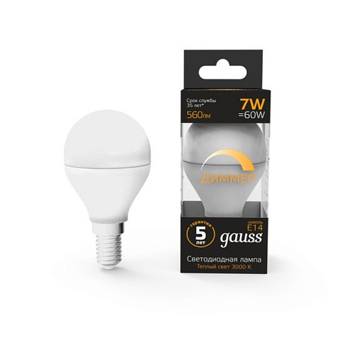 Светодиодная лампа Gauss Шар 7W 560Lm 3000K E14 105101107-D 105101107-D_GAUSS