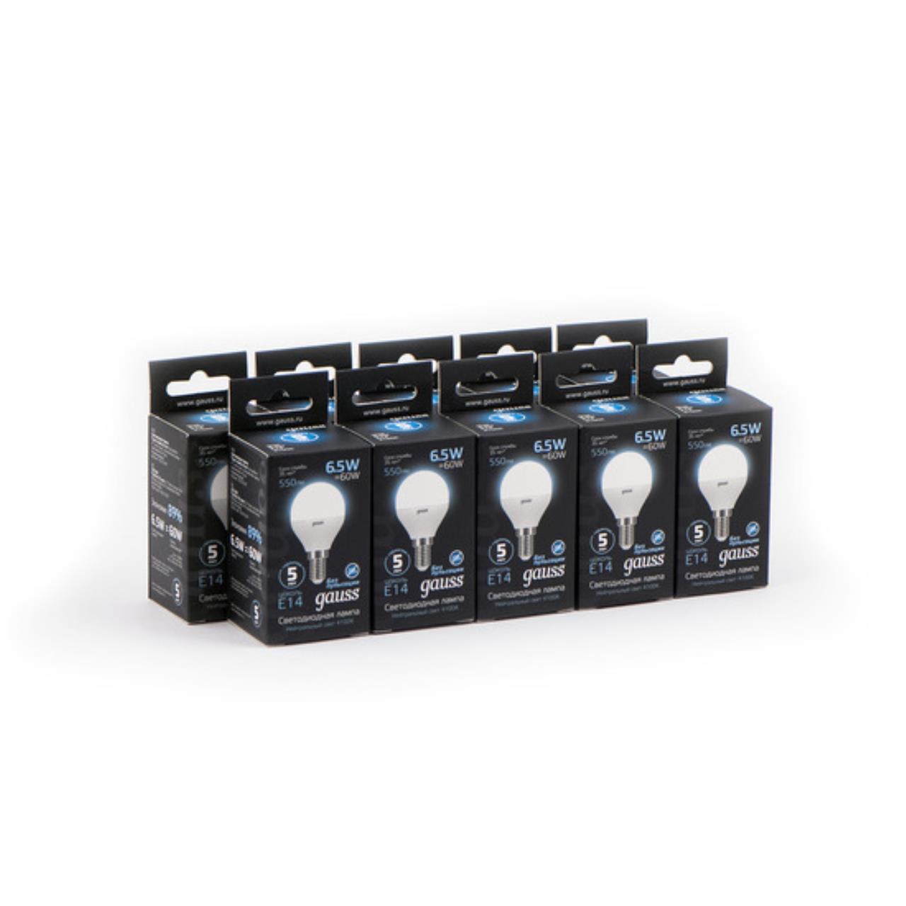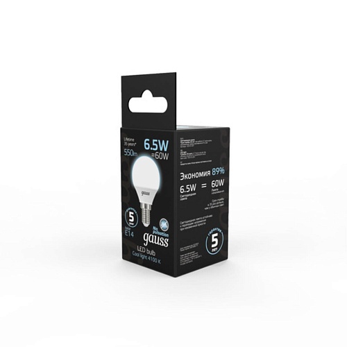 Светодиодная лампа Gauss Шар 6,5W 550Lm 4100K E14 105101207 105101207_GAUSS