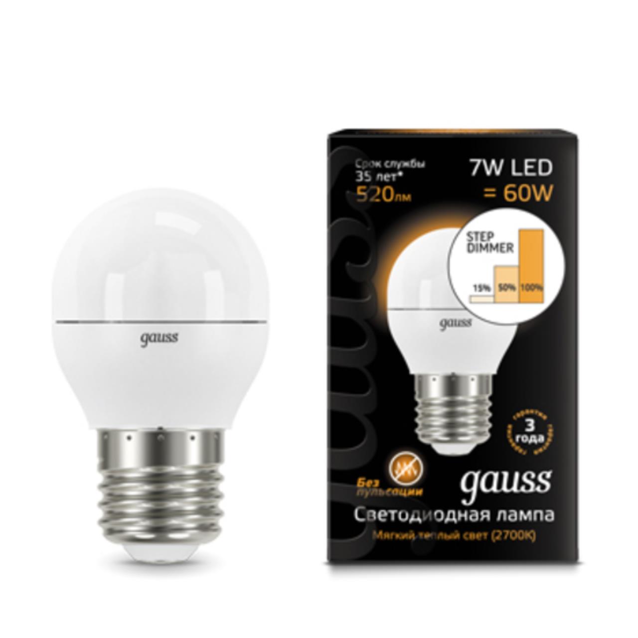 Светодиодная лампа Gauss Шар 7W 520Lm 3000K E27 105102107-S 105102107-S_GAUSS