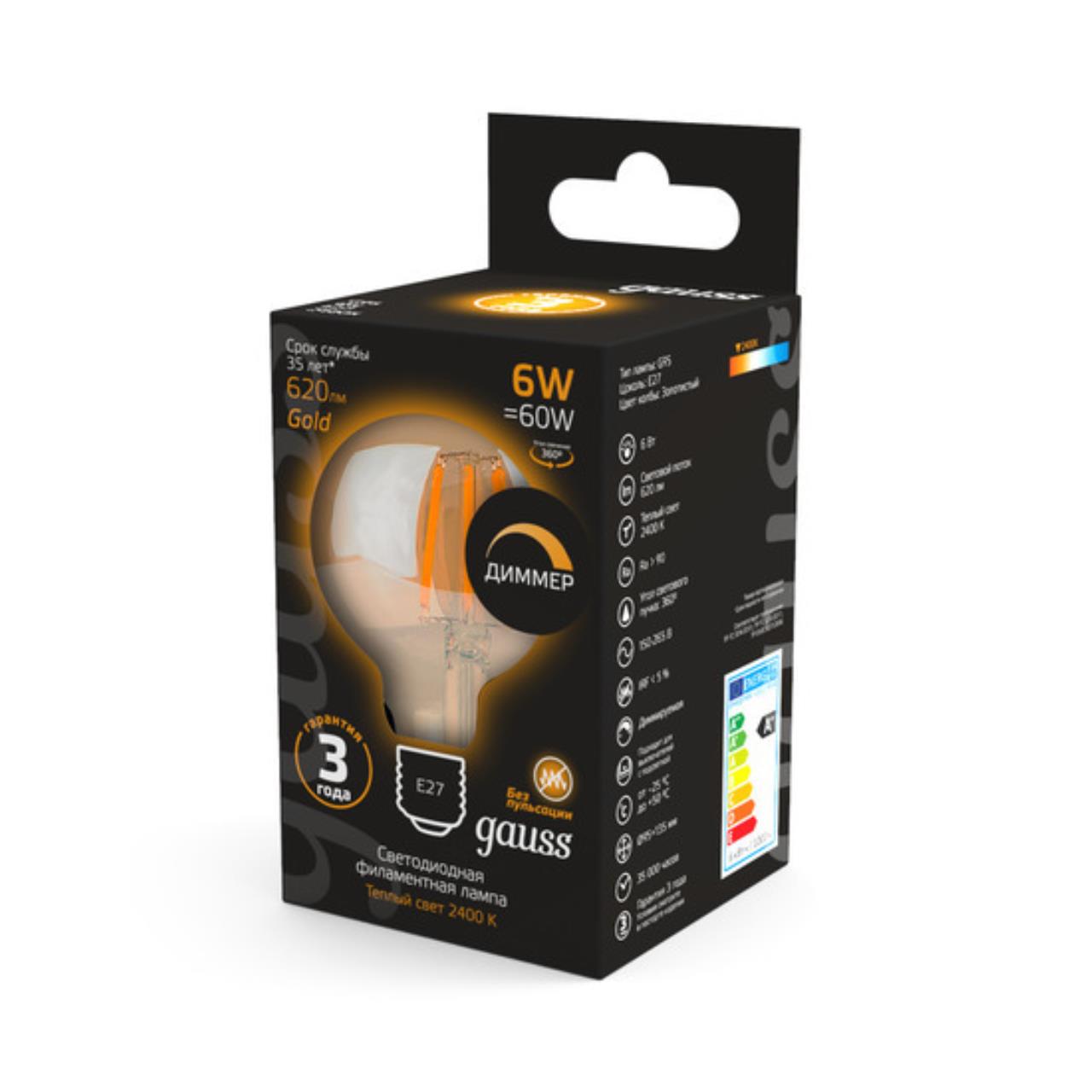 Светодиодная филаментная лампа Gauss G95 6W 620Lm 2400K E27 105802006-D 105802006-D_GAUSS