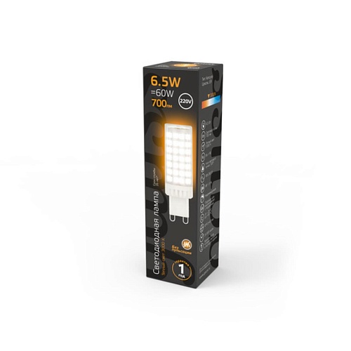 Характеристики Светодиодная лампа Gauss 6,5W 770Lm 3000K G9 107309106
